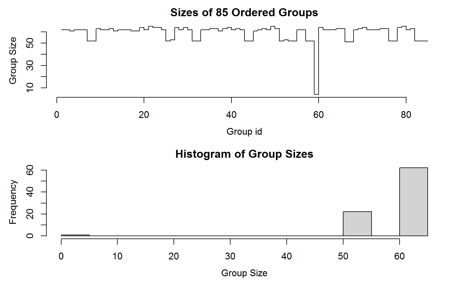 ## $ group.sizes: int [1:85] 62 62 61 62 62 62 52 52 63 62 ...