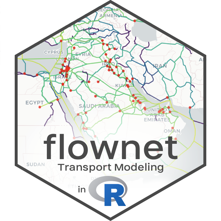 flownet provides efficient tools for transportation modeling in R, supporting network processing, route enumeration, and traffic assignment tasks. It implements the path-sized logit (PSL) model for traffic assignment and provides powerful utilities for network processing/preparation.